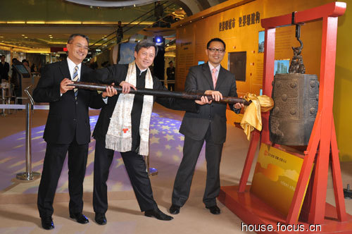 长江实业执行董事赵国雄先生、长江实业投资有限公司董事郭子威先生、长实(中国)投资有限公司总经理陈悦明先生合力敲响了预示吉祥和好运的大钟